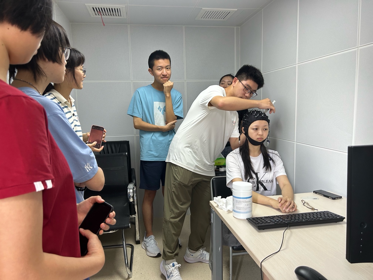 7月18日上午,新葡的京集团8814副教授李菲带来脑电课程,课程内容丰富新颖,激发了学员的兴趣和热情。通过课堂讲解、视频学习和现场实操,学员们充分了解了脑电实验的原理,电极帽的分类及作用,脑电实验开始前的硬件、软件准备工作,实验过程中可能遇到的问题及处理方式,以及实验数据的后期筛选及处理等相关知识。学员们分组参观新葡的京集团8814脑电实验室,并观摩脑电实验全过程。李菲就学员提问进行了现场答疑,使学员们对语言和大脑的关系有更深入的理解。